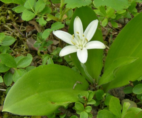 Queen’s Cup, Clintonia uniflora. The delicate white flower is followed by a single blue berry. We had just discovered a stand of these small woodlanders up near Tyee Lake in our own region, in bud stage, so we were happy to observe the many in bloom at Goodsir as a sort of prelude to the local season, as it were.