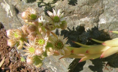Sempervivum (Hen-and-Chicks) bloom spike. Leah & Michael’s garden.