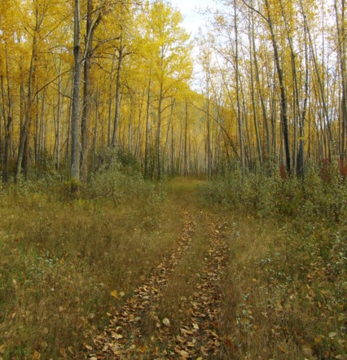 Through the golden forest, down along the river, Macalister, B.C. October 9, 2014