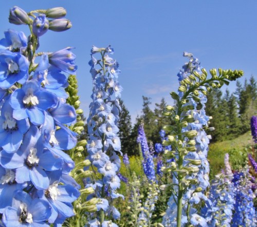 ‘Summer Skies” Pacific Giant delphinium blooming in the nursery beds, Hill Farm, July 7, 2013