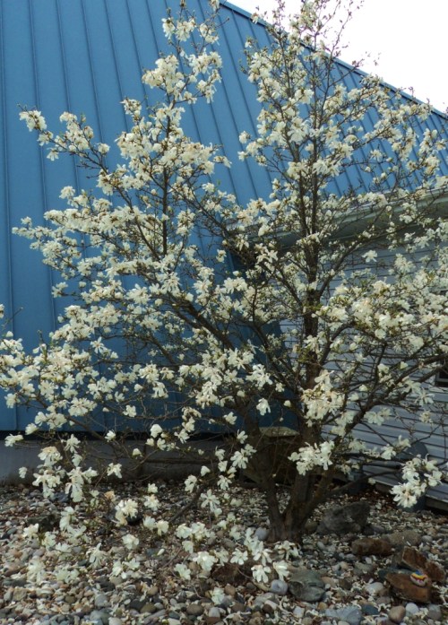 Not in the Hill Farm garden, but in West Quesnel at the little A-frame Lutheran Church is this zone-pushing Star Magnolia tree. The winter of 2014-15 was obviously mild enough for this stellar show.