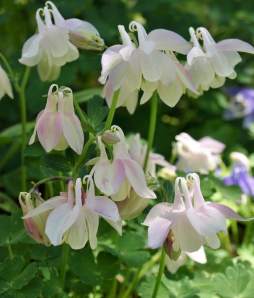 Wonderful year for columbines! Japanese fan columbine, Aquilegia flabellata, has hybridized to produce some interesting forms, such as this white flushed with streaks of rosy pink.
