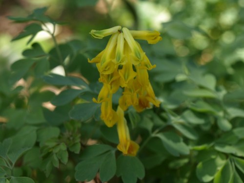 Corydalis lutea (now reclassified as Pseudofumaria lutea) makes a lush clump of blue green foliage, topped by clusters of intricate yellow flowers. This one blooms and blooms and blooms. Hoping to be able to share it through the nursery in the next year or two.