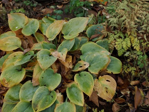 Foliage effects: an unknown hosta (we are very good at losing tags), and Painted Fern ‘Branford Beauty’ – Athyrium japonicum x filix-femina.