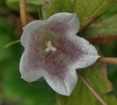 The rompingly invasive Korean Bellflower, Campanula takesimana, is something of a pest, but I forgive it its wilful ways when I tip up a bell and see this charming arrangement of freckles and whiskers.